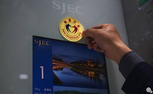 If you are a conscientious observer, you may find colorful "Touch Love" logos pasted on public escalators and elevators produced by SJEC. The colorful logos add a warm touch to these cold machines.